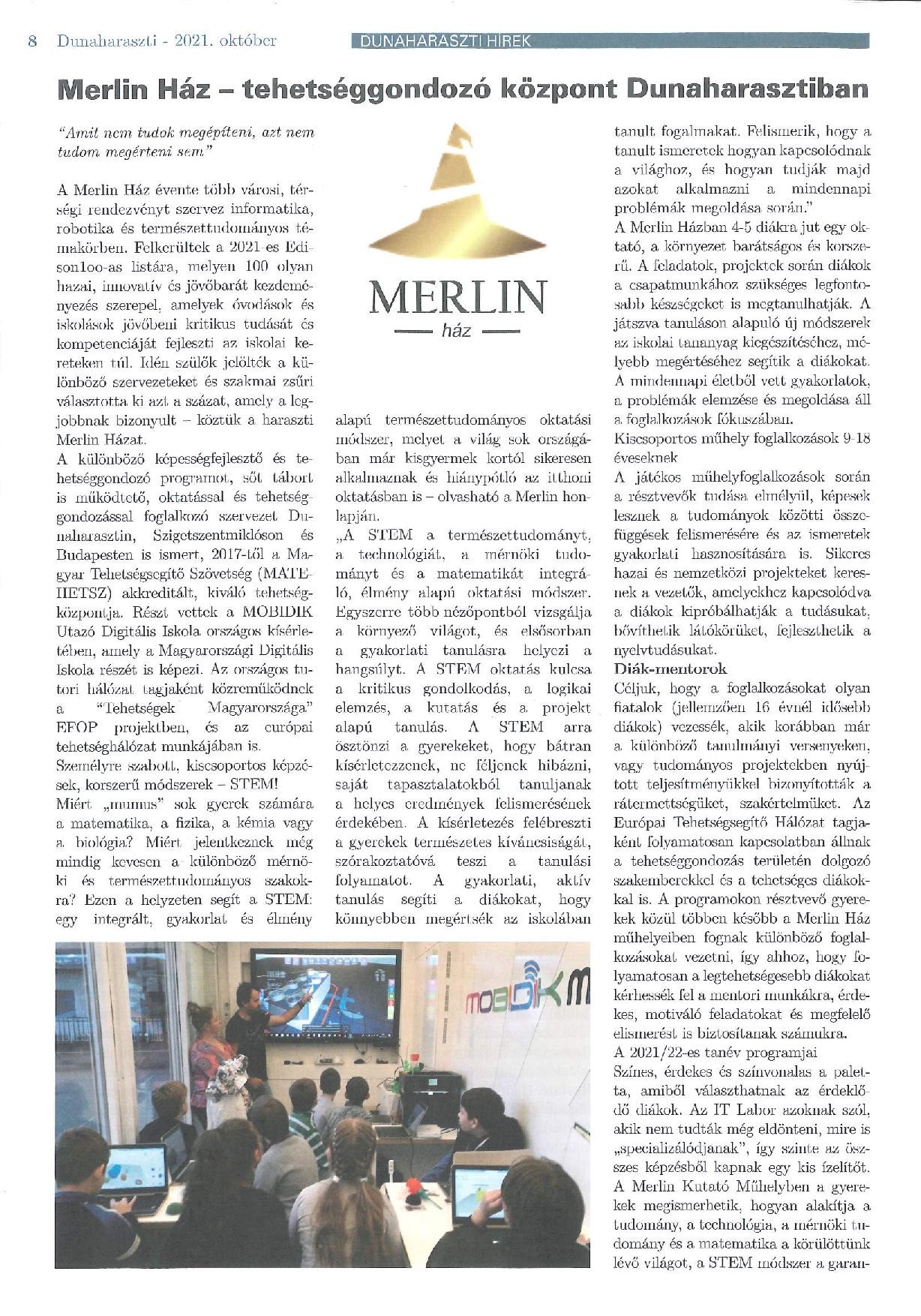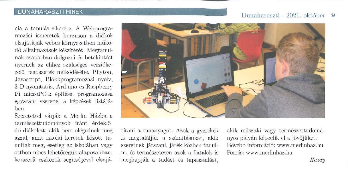 Újságcikk – Dunaharaszti Hírek 2021. október